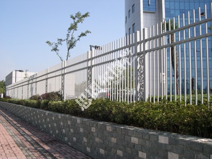 组成:新型栅栏,由不同规格的方管组装而成,使用的材料均为热镀锌钢管进行静电喷涂处理.静电喷涂栅栏由钢管、不锈钢防盗螺栓和各种装饰圈组成。