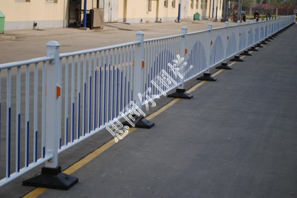 交通隔离栅栏的颜色主要是蓝色、白色、黑色;