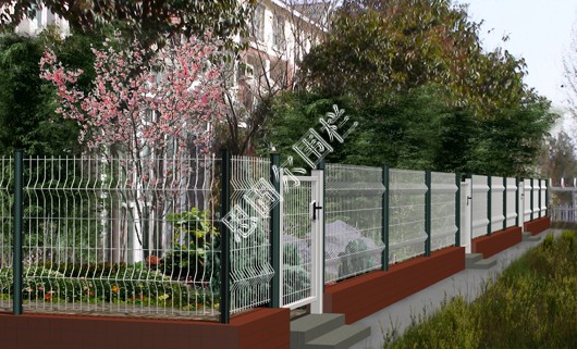 小区围栏常见有铁丝网焊接成的护栏和锌钢栅栏。