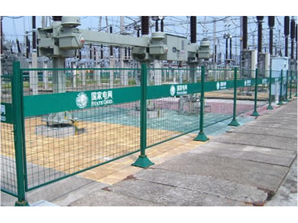 网片表面铁板经浸塑之后丝网印刷国家电网标志。标志新颖,主题突出。是国家电网护栏网与其他护栏网明显的区别,组装十分灵活,快捷,方便.色彩鲜艳、抗老化、防腐蚀、强度高。外力撞击不易变形。