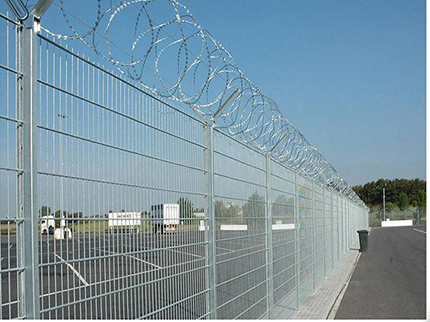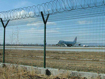 机场隔离网又称作“Y型安全防御护网”,机场护栏网是由V型支架立柱,加强型焊接片网,安全防盗连接件和热镀锌刀片刺笼组成强度和安全防御性级别很高。近年来,被广泛应用在机场,军事基地等高安全场所。
